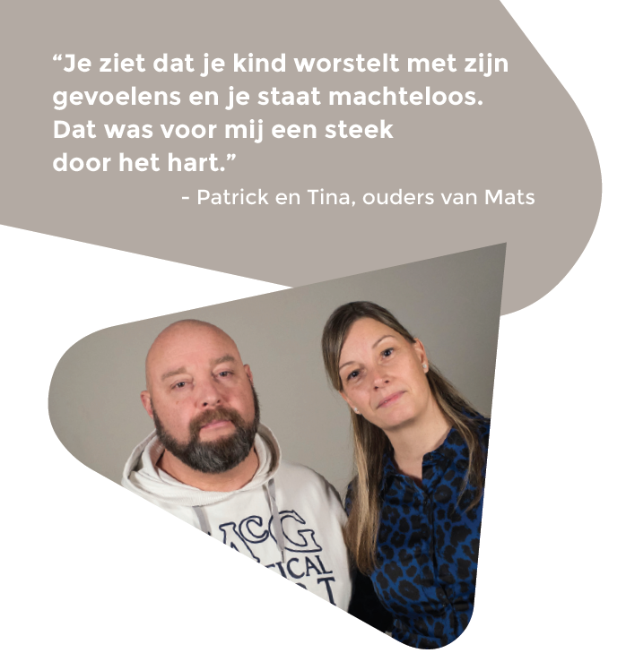 - En in september lanceren we een gloednieuwe website waar holebi’s en transgender personen, hun ouders, en hulpverleners tips en instrumenten vinden hoe ze kunnen omgaan met zelfmoordgedachten. Je vindt er onder andere de getuigenis van Patrick en Tina en hoe zij hun zoon Mats gesteund hebben in zijn proces.